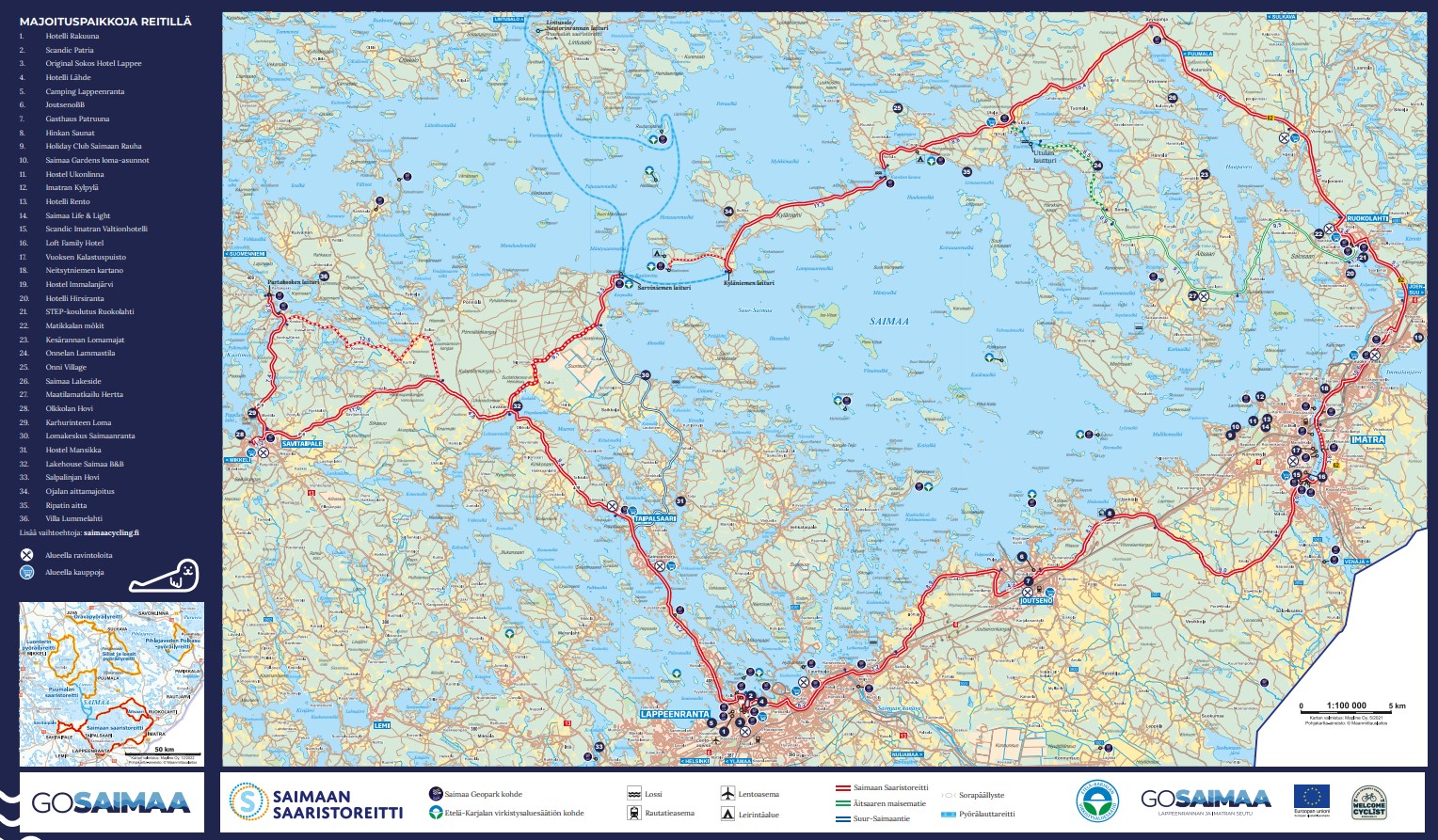 Noin 210 kilometrin mittainen Saimaan saaristoreitti tarjoaa upeita elämyksiä: Lappeenrannan ja Imatran kaupunkien nähtävyydet sekä neljä viehättävää kirkonkylää – Taipalsaari, Savitaipale, Ruokolahti ja Joutseno. Reitin varrella pääset nauttimaan maalaismaisemien idyllistä, historiallisista kohteista sekä kauniista järvimaisemista. Reitin varrelta löytyy myös "Saimaan Riviera" eli Huuhanranta.